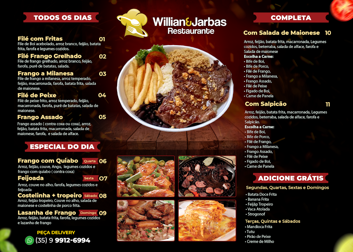 Welcome to Restaurante Willian e Jarbas, a hidden gem nestled in the heart of Muriaé. Known for its homemade flavors and warm ambiance, this eatery offers an inviting atmosphere perfect for families and friends. Located conveniently on Av. Dr. Passos, 97, it captivates guests with its self-service setup, where you can enjoy a variety of dishes without the fuss of weighing your meal, apart from its signature meats.